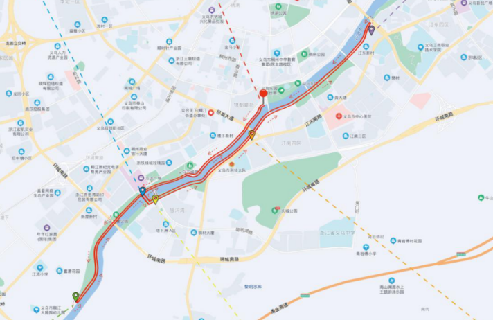 沿着江滨公园江滨绿道,从丹溪桥下起跑,途径西江桥、塔下廊桥、凌波大桥、义乌江大桥至义乌儿童乐园折返至西江路口桥,再沿凌波大桥、塔下廊桥、经发大桥、丹溪大桥、南门大桥、篁园大桥至义东大桥折返。原路返回至起点,再折返重复一次。总长度42.195公里,从迷人的夜到璀璨的明,从起步动员到身心乐享,从胜利到更大的胜利!