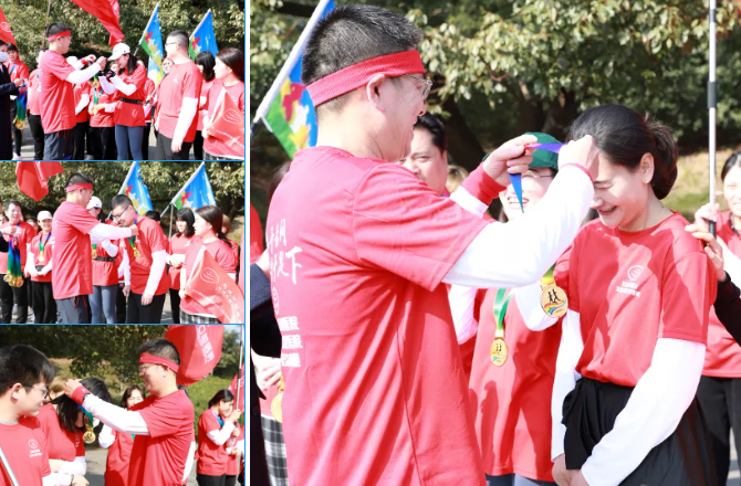 董事长为跑完全程的同仁颁发纪念奖牌