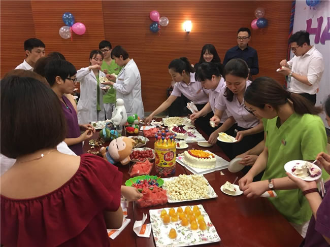 由于很多员工外出办事,但我们也要对未能到达现场的寿星们,致以诚挚的问候和生日祝福,愿他们事业进步、生活美满。大家一起齐唱生日歌,并许下自己的生日愿望。当寿星切生日蛋糕时,现场气氛被推向高潮,吃着蛋糕,大家脸上都绽开着比蛋糕更甜的笑容。