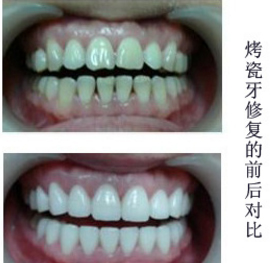 烤瓷牙则是通过将缺牙前后的两颗牙齿磨小,制造出一座与患者口腔状况相符的'烤瓷桥','桥'中间是一颗或多颗完整的假牙,'桥'两头的假牙形状相当于两颗被磨小的牙的'帽子',套上两颗磨小的牙后,粘贴固定,使这两颗牙'恢复完整',承担支撑假牙的任务。